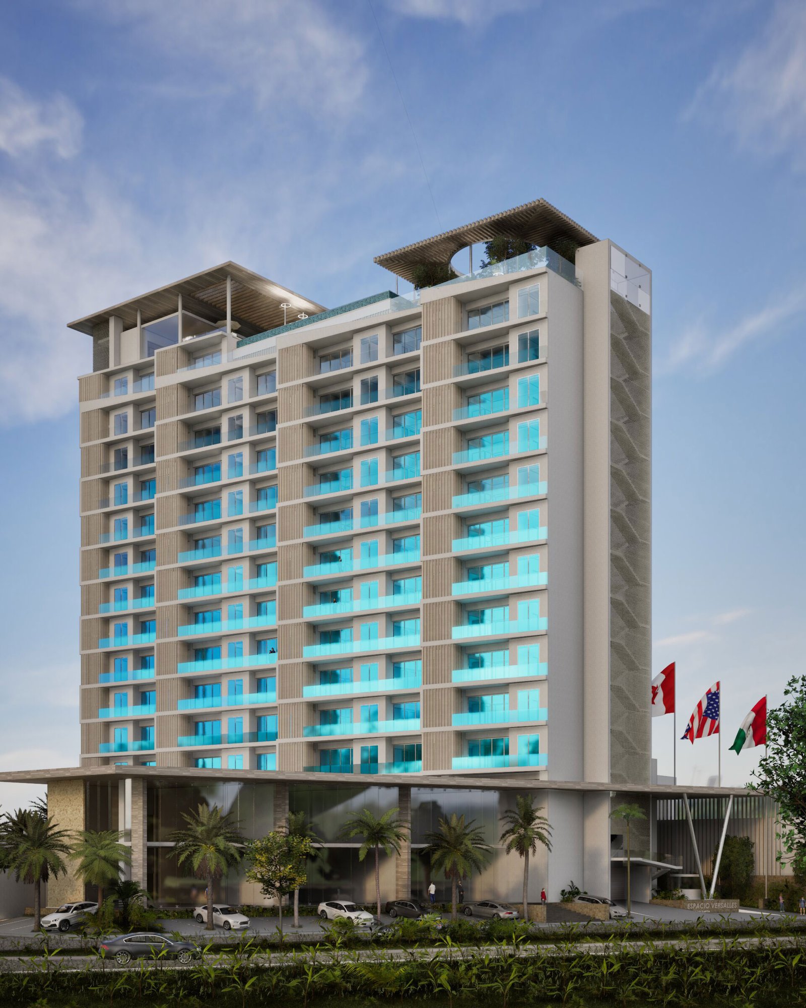 Espacio Versalles is set to become an icon in the Versalles area, one of the most high-value neighborhoods in all of Puerto Vallarta. Rising 17 stories and offering 112 units with 1, 2, and 3 bedrooms, this project by Grupo Dalton delivers highly attractive investment opportunities thanks to its prime location, ocean views, three levels of residential parking, and first-class amenities such as a recreational pool, lap pool, gym, coworking lounge, rooftop terraces and gardens, a pet park, and a distinctive lobby. In addition, the commercial spaces next to the development open the door to businesses that can add significant value to the project. Espacio Versalles will set a new standard in one of the bay’s finest neighborhoods.