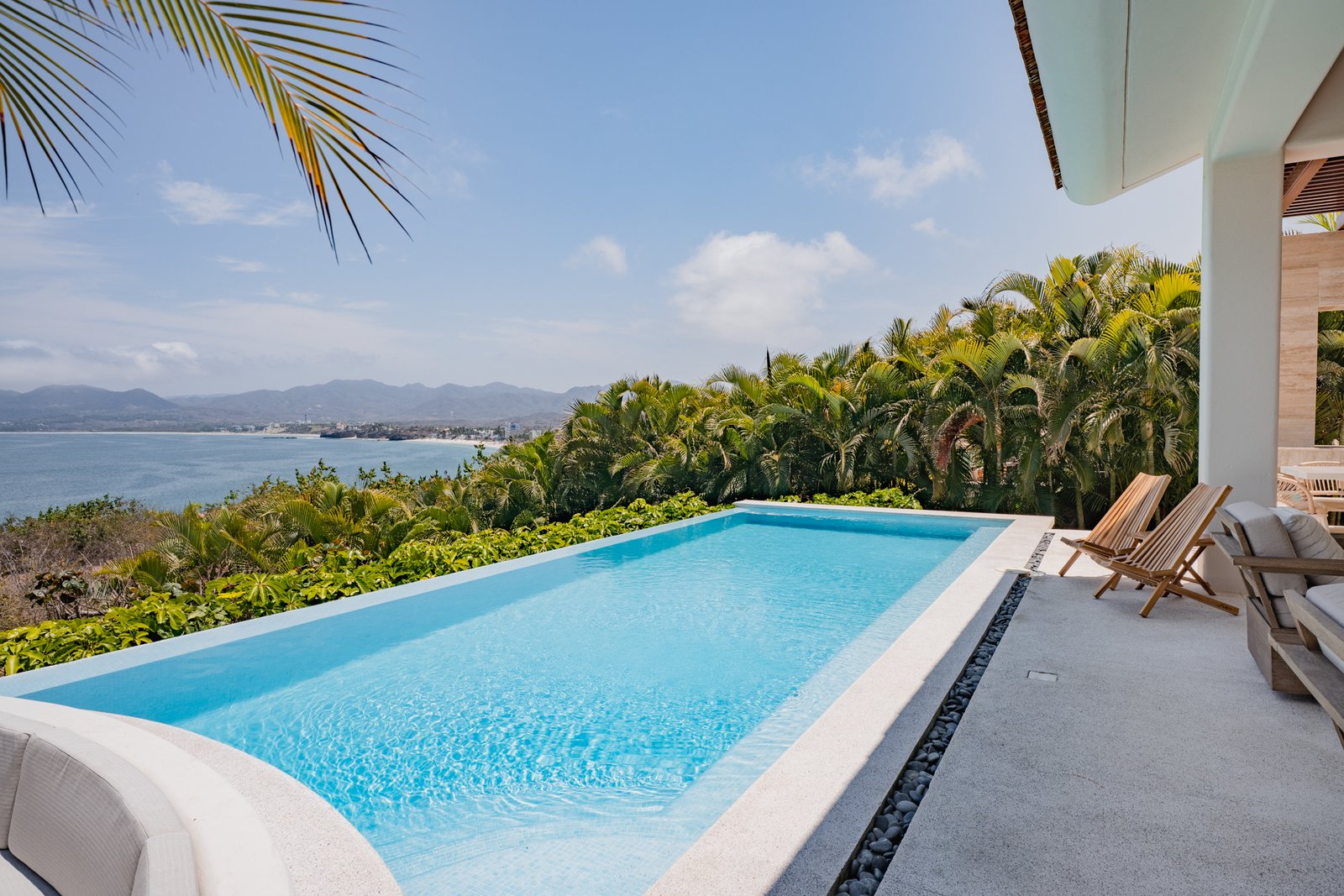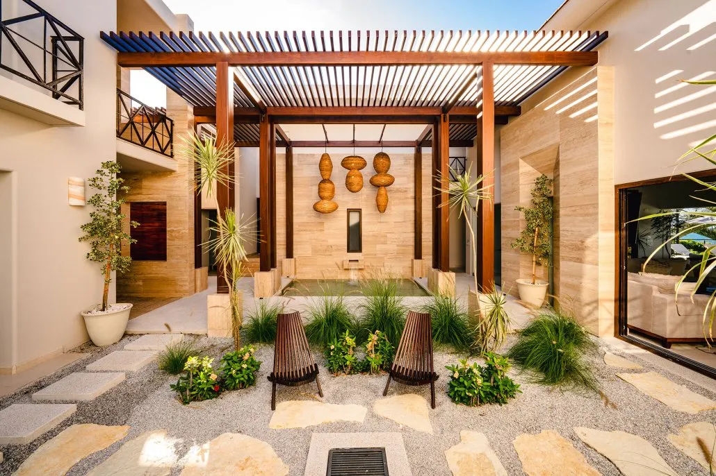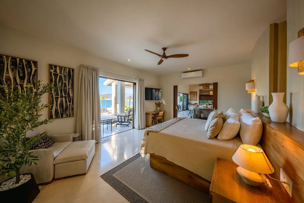 With a strong emphasis on both its indoor and outdoor common areas, the villa invites guests to gather at the heart of the property without sacrificing the beauty and impact of its elegant bedrooms. The subtle blending of interior and exterior spaces creates the sensation of being immersed in nature, offering spectacular ocean views while maintaining the comfort of an exclusive villa.